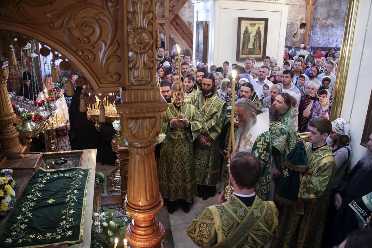 По окончании Литургии состоялся крестный ход вокруг Успенского собора обители.