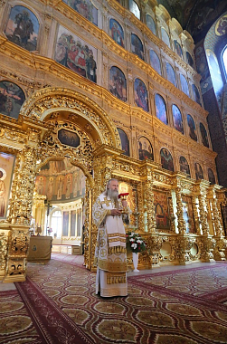 Его Высокопреосвященство возглавил раннюю Литургию в Успенском соборе обители.