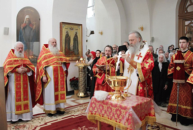 Его Высокопреосвященству сослужили братия Свято-Троицкой Сергиевой лавры в священном сане и духовенство Покровского Хотькова монастыря.