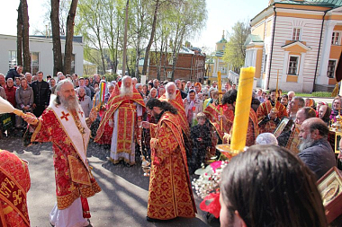 6 мая 2016 года, в пятницу Светлой седмицы, день празднования памяти св. вмч. Георгия Победоносца и иконе Божией Матери «Живоносный источник», в Никольском соборе Покровского Хотькова ставропигиального женского монастыря Божественную литургию совершил председатель Синодального отдела по монастырям и монашеству архиепископ Сергиево-Посадский Феогност.