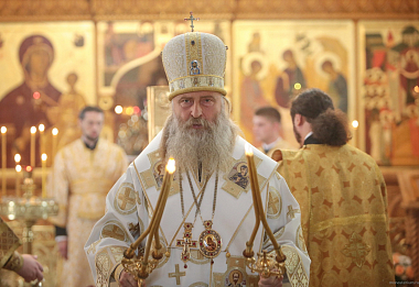 Высокопреосвященнейшему владыке сослужили братия Свято-Троицкой Сергиевой лавры в священном сане и клирики Покровской Хотьковой обители.
