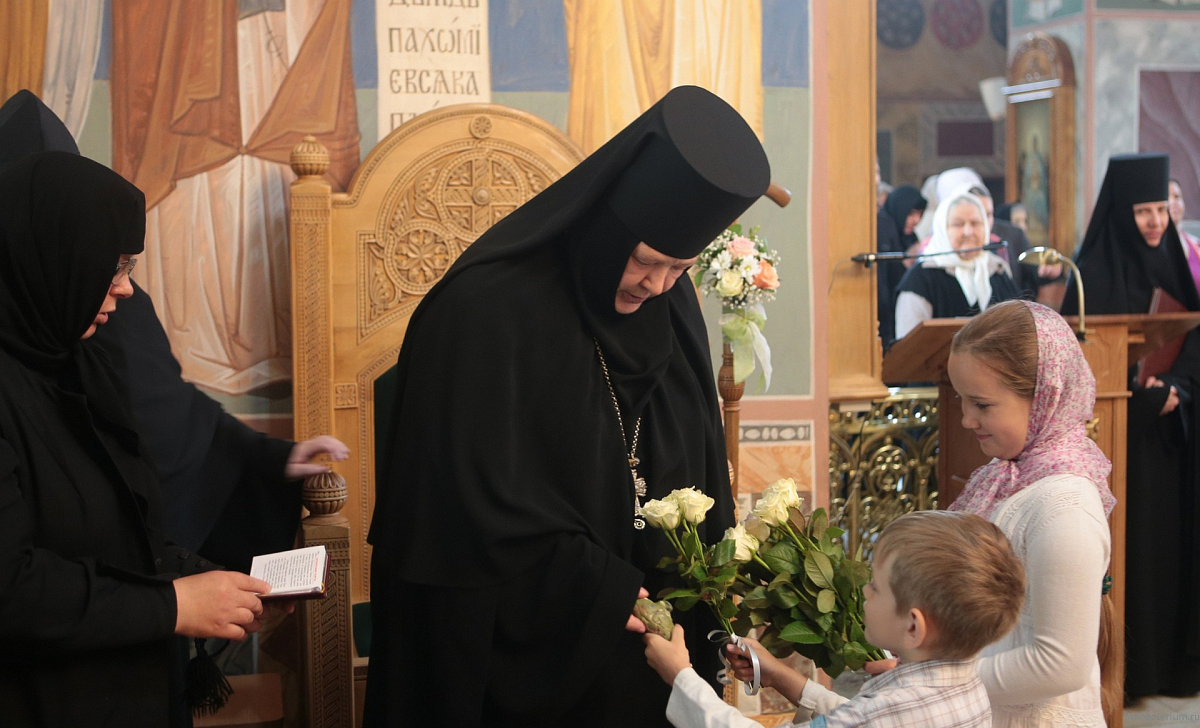 Матушке Олимпиаде в день ее тезоименитства преподнесли много цветов, и в адрес именинницы прозвучало множество пожеланий.