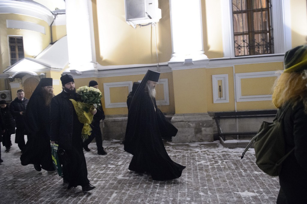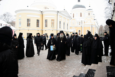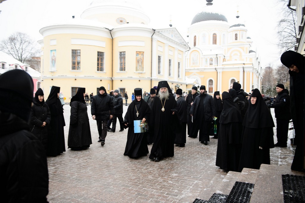 В этот день почтить память блаженной царицы Феофании и поздравить с именинами матушку игумению прибыл председатель Синодального отдела по монастырям и монашеству, наместник Свято-Троицкой Сергиевой лавры архиепископ Сергиево-Посадский Феогност.