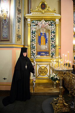 По окончании Божественной литургии архиепископ Феогност передал игумении Феофании поздравление Святейшего Патриарха Московского и всея Руси Кирилла по случаю дня ее тезоименитства.