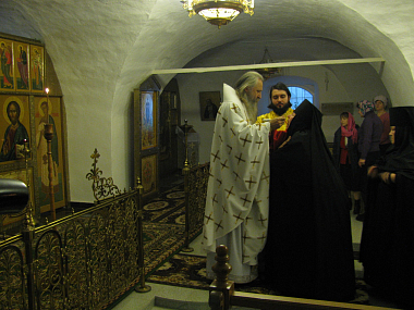 По окончании богослужения от имени Святейшего Патриарха Московского и всея Руси Кирилла Высокопреосвященнейший Феогност поблагодарил настоятельницу монастыря игумению Антонию (Корнееву), сестер, паломников и прихожан за молитвы и труды на благо святой обители и обратился к молящимся с архипастырским словом: