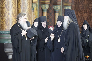 За богослужением молились: заместитель председателя Синодального отдела по монастырям и монашеству, настоятельница Зачатьевского ставропигиального женского монастыря Москвы игумения Иулиания (Каледа); настоятельница Богородице-Рождественского ставропигиального женского монастыря Москвы игумения Викторина (Перминова); настоятельница Полоцкого Спасо-Евфросиниевского женского монастыря игумения Евдокия (Левшук).