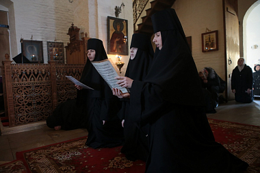 Его Высокопреосвященству сослужили заместитель председателя Синодального отдела по монастырям и монашеству архимандрит Стефан (Тараканов) и духовенство обители.