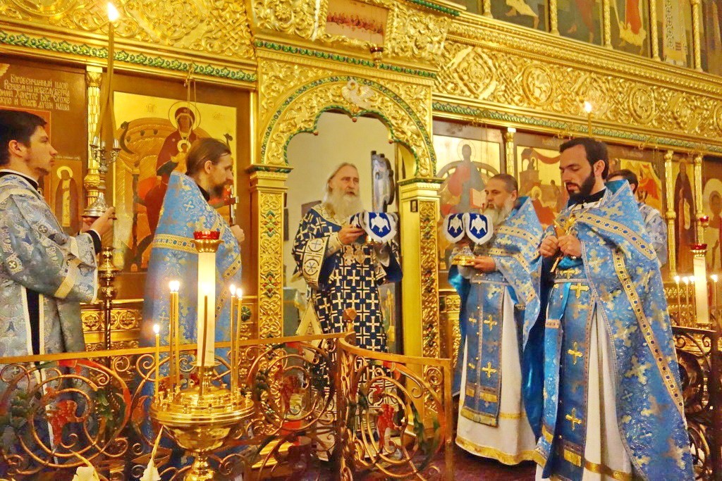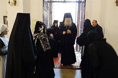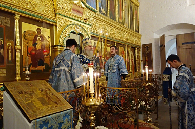 Его Высокопреосвященству сослужило духовенство обители.