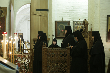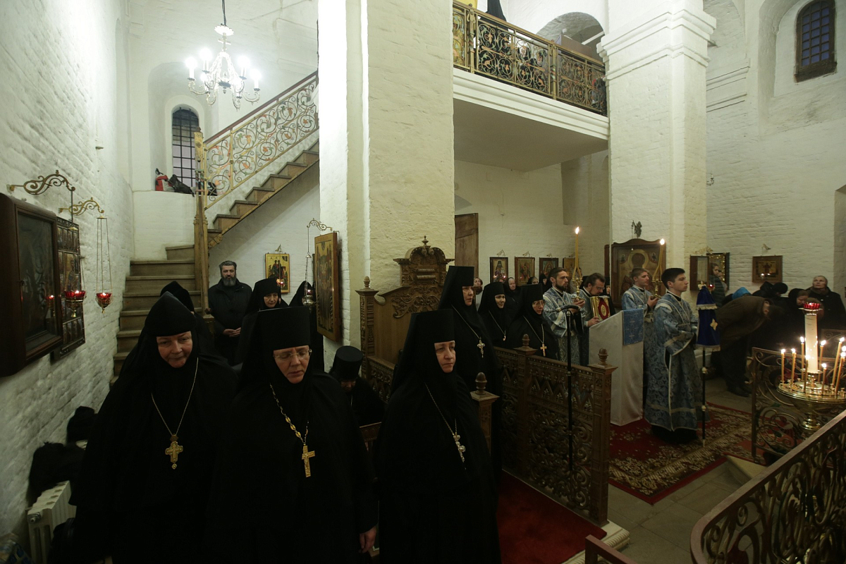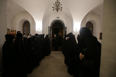 За богослужением молились игумены и игумении ставропигиальных монастырей, помощник председателя Синодального отдела по монастырям и монашеству по вопросам сохранения и использования объектов культурного наследия С.А. Анохина, заведующая канцелярией Синодального отдела по монастырям и монашеству Г.В. Филиппова, главный редактор официального сайта Синодального отдела по монастырям и монашеству Е.П. Орлова, представители пресс-службы Отдела, монашествующие ставропигиальных монастырей, сестры и прихожане обители.