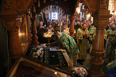 По окончании Литургии Высокопреосвященнейший Феогност отслужил краткий молебен у мощей преподобного Иосифа Волоцкого и обратился ко всем собравшимся с архипастырским словом.