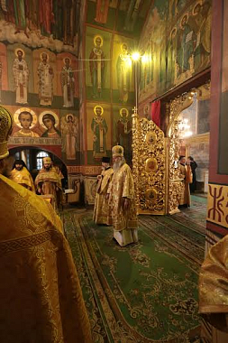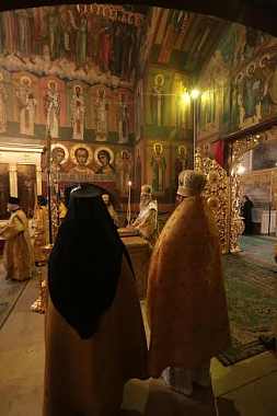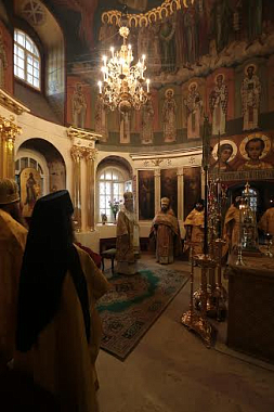 Его Высокопреосвященству сослужили наместник монастыря архимандрит Сергий (Воронков) и священноиноки обители.