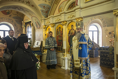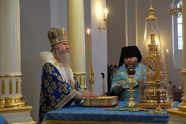 Его Высокопреосвященству сослужили клирики обители.