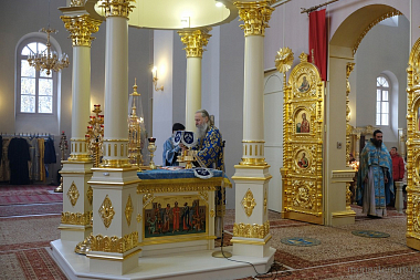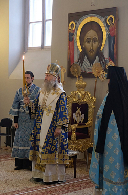 По окончании богослужения был совершен крестный ход в монастырский Иерусалимский храм, где владыка Феогност отслужил молебен перед чтимой иконой Божией Матери Иерусалимской.