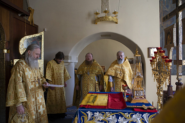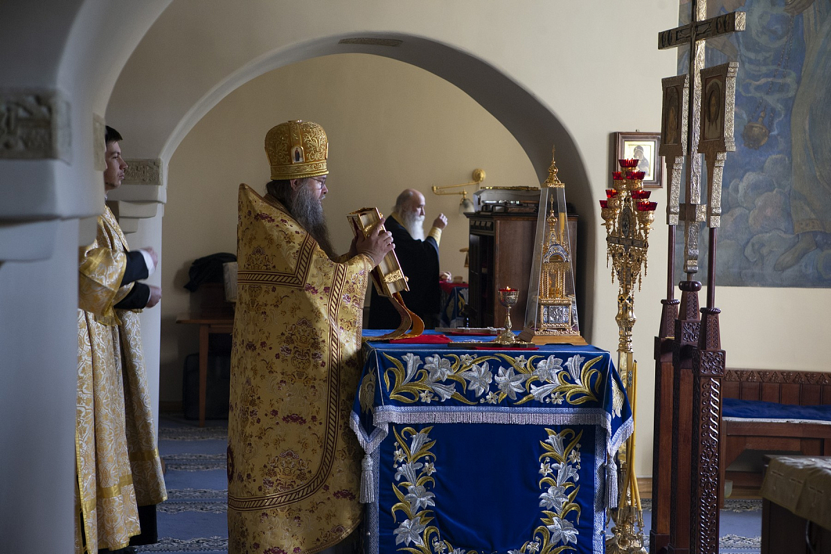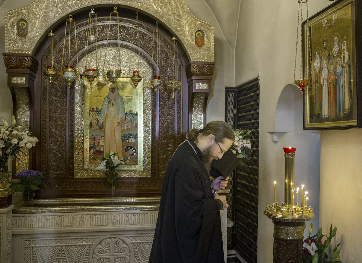 По окончании Литургии было совершено величание преподобномученице Великой княгине Елисавете перед ракой с частицей ее честных мощей и прочитана молитва святой.