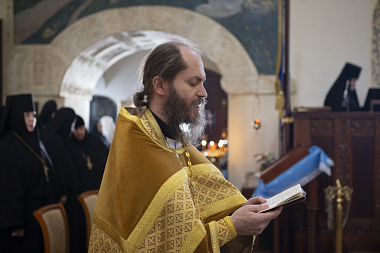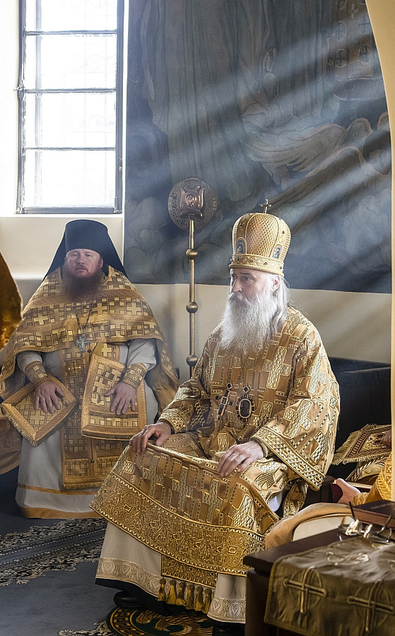 Его Высокопреосвященству сослужили наместник Воскресенского Ново-Иерусалимского ставропигиального мужского монастыря архимандрит Феофилакт (Безукладников), наместник Николо-Угрешского ставропигиального мужского монастыря игумен Варфоломей (Петров), и.о. наместника Сретенского ставропигиального мужского монастыря иеромонах Иоанн (Лудищев), духовенство Марфо-Мариинской обители милосердия.