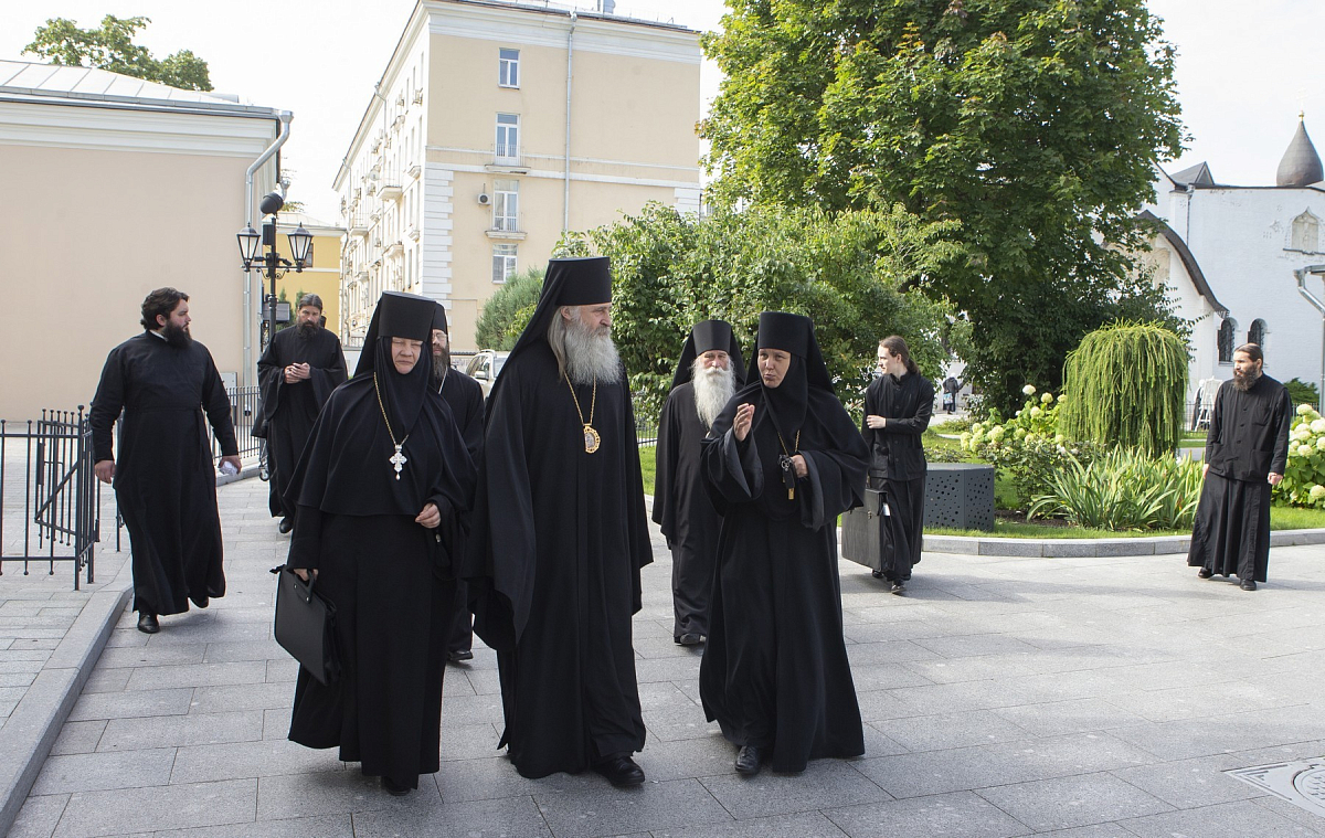 Затем участники богослужения были приглашены на собрание игуменов и игумений ставропигиальных монастырей.