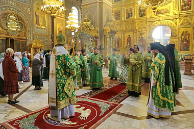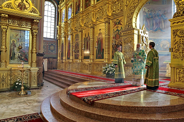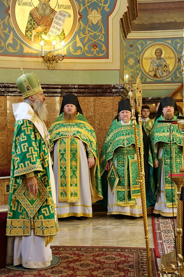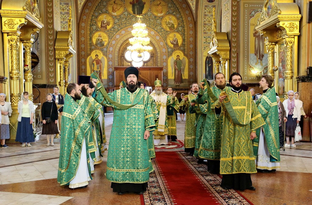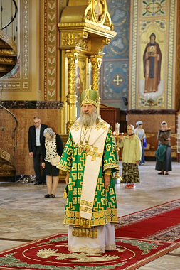 В этот день Божественную литургию в Спасо-Преображенском соборе монастыря возглавил председатель Синодального отдела по монастырям и монашеству архиепископ Сергиево-Посадский Феогност.