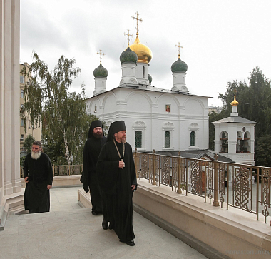 Затем Его Высокопреосвященство встретился с наместником Сретенского монастыря епископом Егорьевским Тионом и поздравил его с престольным праздником обители.