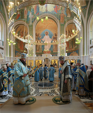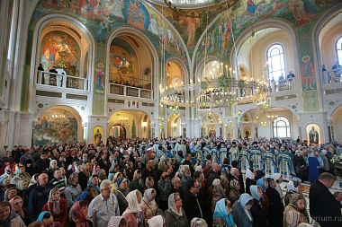 В этот день раннюю Божественную литургию в соборе Сретения Владимирской иконы Божией Матери возглавил председатель Синодального отдела по монастырям и монашеству, наместник Троице-Сергиевой лавры архиепископ Сергиево-Посадский Феогност.