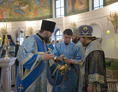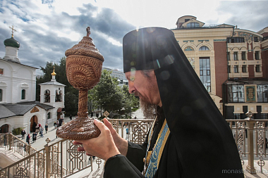 По окончании Литургии состоялся чин Панагии, в котором приняли участие братия монастыря и учащиеся Сретенской духовной семинарии.