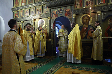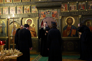 Его Высокопреосвященству сослужили: игумен Филарет (Тамбовский), клирик храма иконы Божией Матери «Всех скорбящих Радость» на Большой Ордынке; иерей Александр Мельников, священник Стефано-Махрищского монастыря; духовенство Троице-Сергиевой лавры.