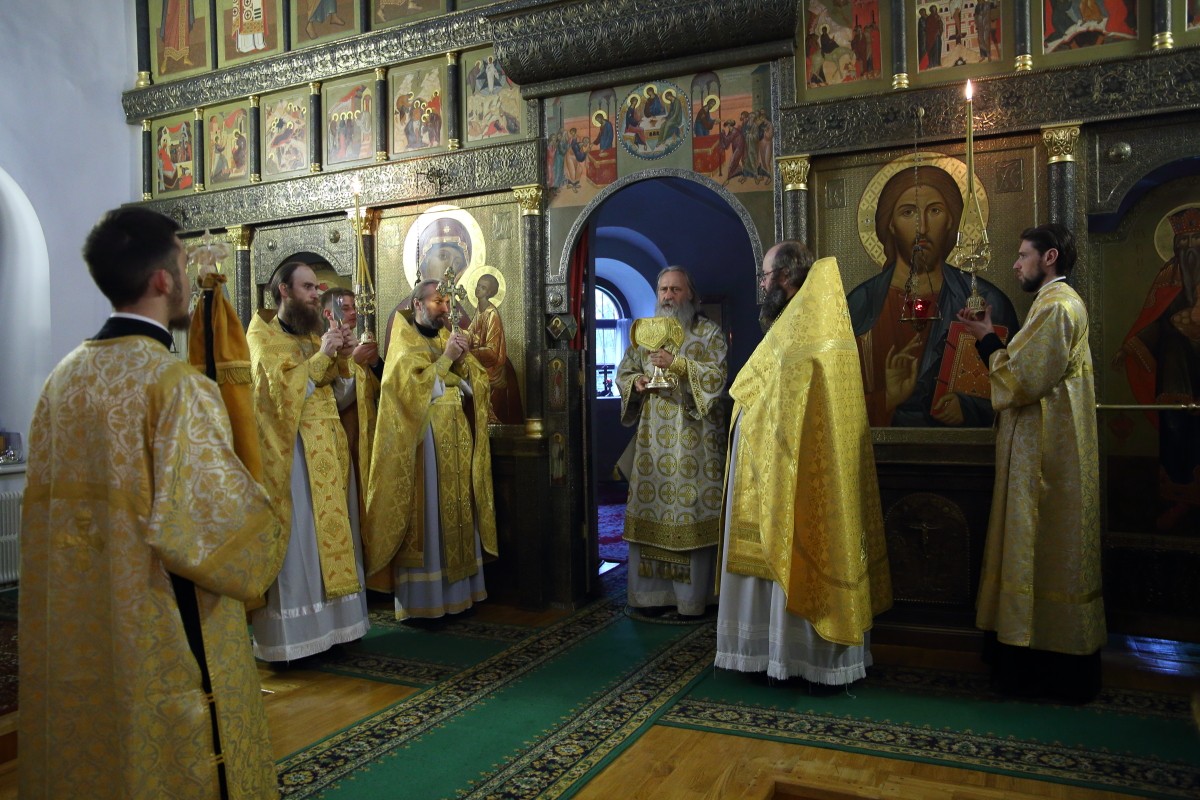 Всех вас благодарю за святые молитвы, причастников поздравляю с принятием Святых Христовых Таин. Выслушаем благодарственные молитвы по Святом Причащении.