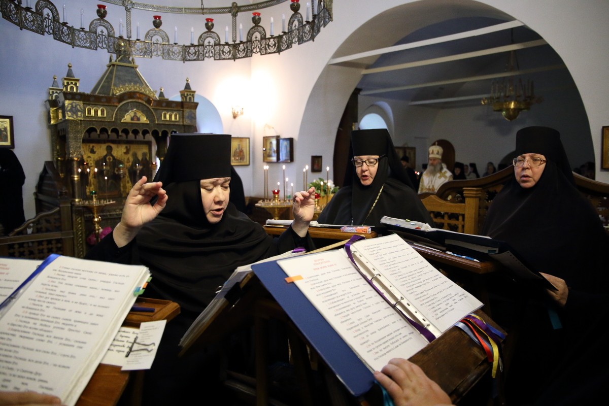 Богослужебные песнопения исполнил сестринский хор Стефано-Махрищского монастыря на два клироса.