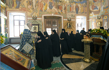По окончании богослужения владыка Феогност передал игумении Елисавете и насельницам обители поздравление с праздником и Первосвятительское благословение Святейшего Патриарха Московского и всея Руси Кирилла.