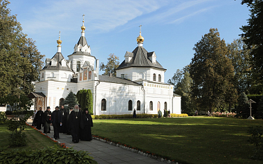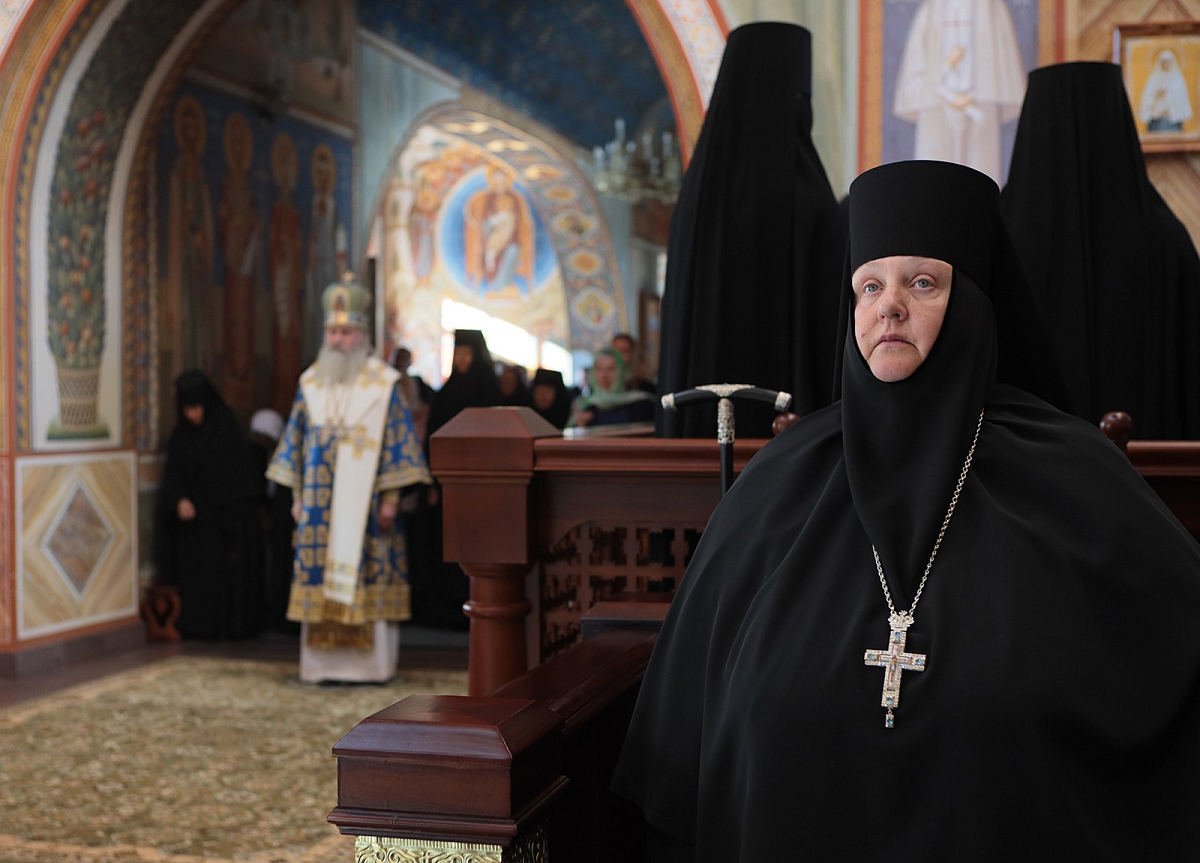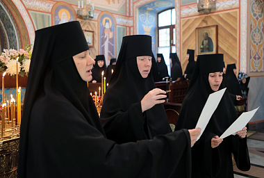 Церковные песнопения исполнил сестринский хор монастыря и мужской хор храма Живоначальной Троицы в Останкино.