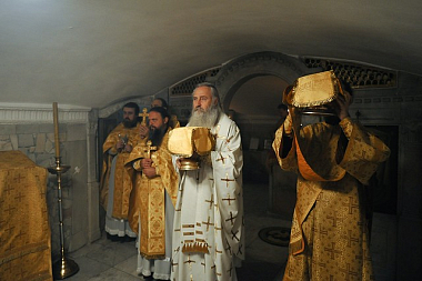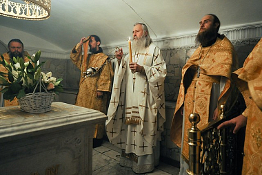 9 сентября 2019 года, в день тезоименитства приснопоминаемого Святейшего Патриарха Московского и всея Руси Пимена, председатель Синодального отдела по монастырям и монашеству архиепископ Каширский Феогност совершил Божественную литургию в крипте Успенского собора Свято-Троицкой Сергиевой лавры.