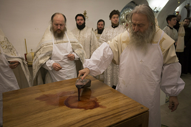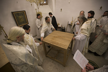 Чин великого освящения и последовавшую за ним Божественную литургию в новоосвященном приделе возглавил наместник Троице-Сергиевой лавры архиепископ Сергиево-Посадский Феогност.