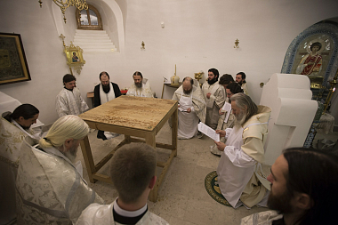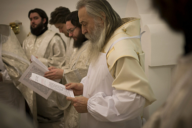 Богослужебные песнопения исполнил монастырский хор под управлением игумена Силуана (Баранова).