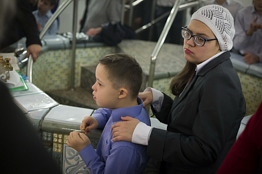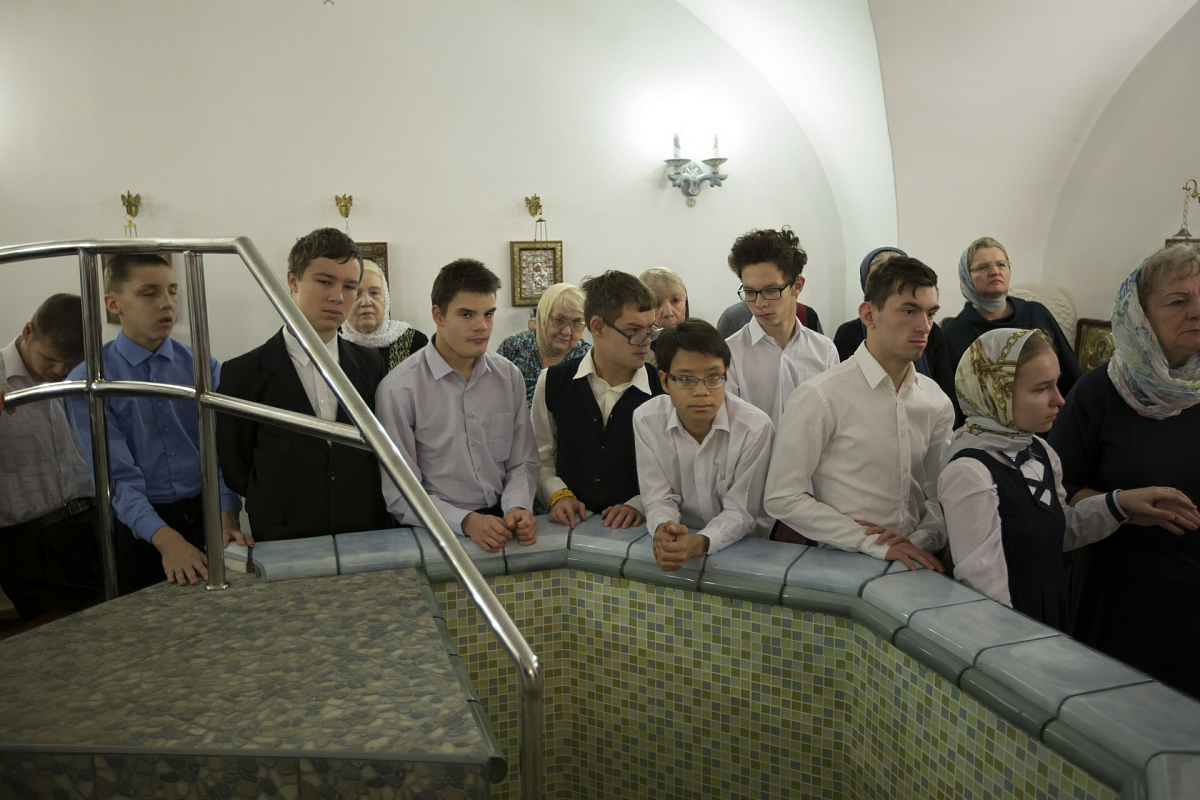 В нижнем приделе Святителя Луки, архиепископа Симферопольского и Крымского, храма в честь Явления Пресвятой Богородицы преподобному Сергию Радонежскому устроена купель с удобной лестницей, украшенная объемными керамическими изображениями разных сюжетов из Евангелия. Все они окрашены яркими красками и хорошо видны слабовидящим.