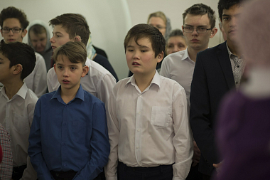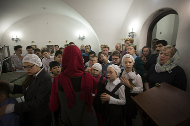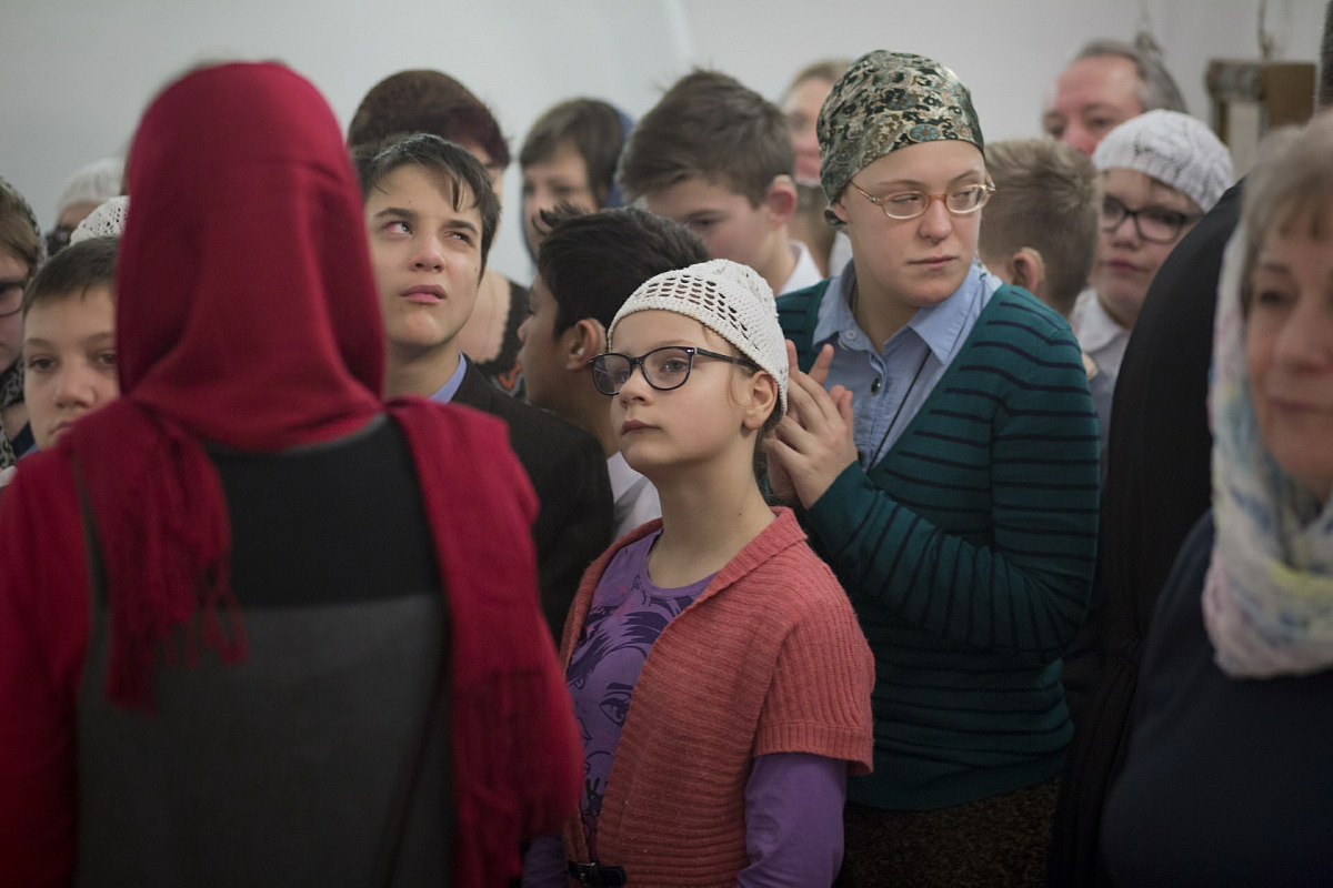 За Литургией молились директор ФГБУ «Сергиево-Посадский дом-интернат слепоглухих для детей и молодых инвалидов» Минтруда России Галина Епифанова, персонал учреждения и его воспитанники, а также маленькие жители Сергиева Посада вместе со своими родителями и родственниками.