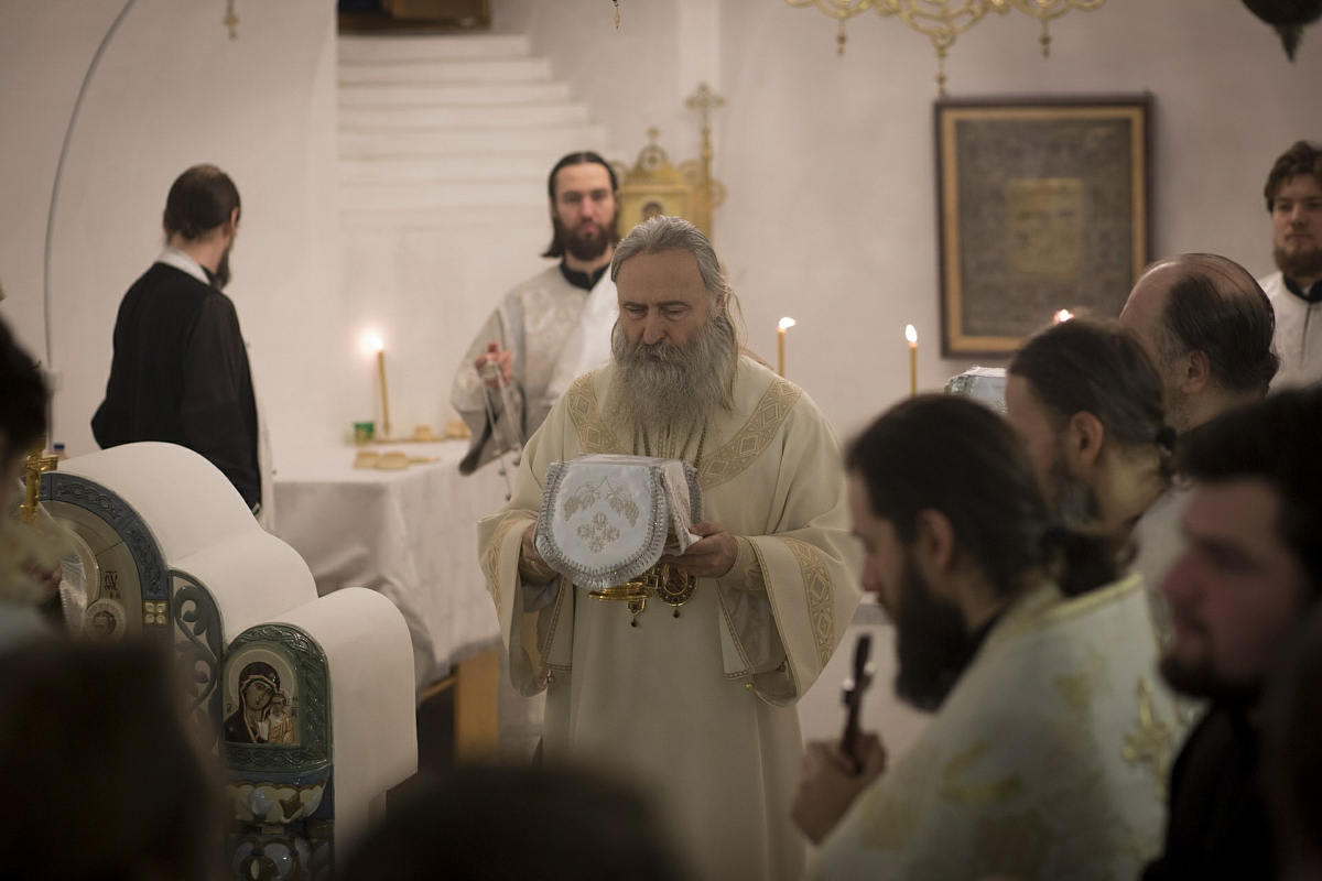 По окончании Литургии владыка Феогност поздравил молящихся с освящением храмового придела и обратился к собравшимся с архипастырским словом.