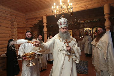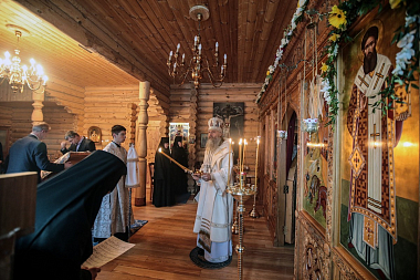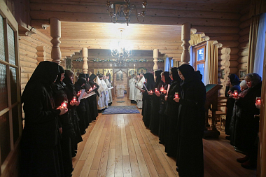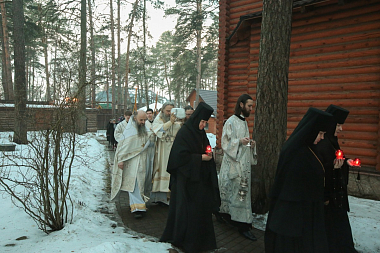Его Высокопреосвященству сослужили заместитель председателя Отдела архимандрит Стефан (Тараканов) и монастырское духовенство.