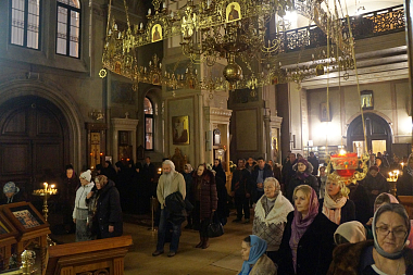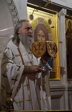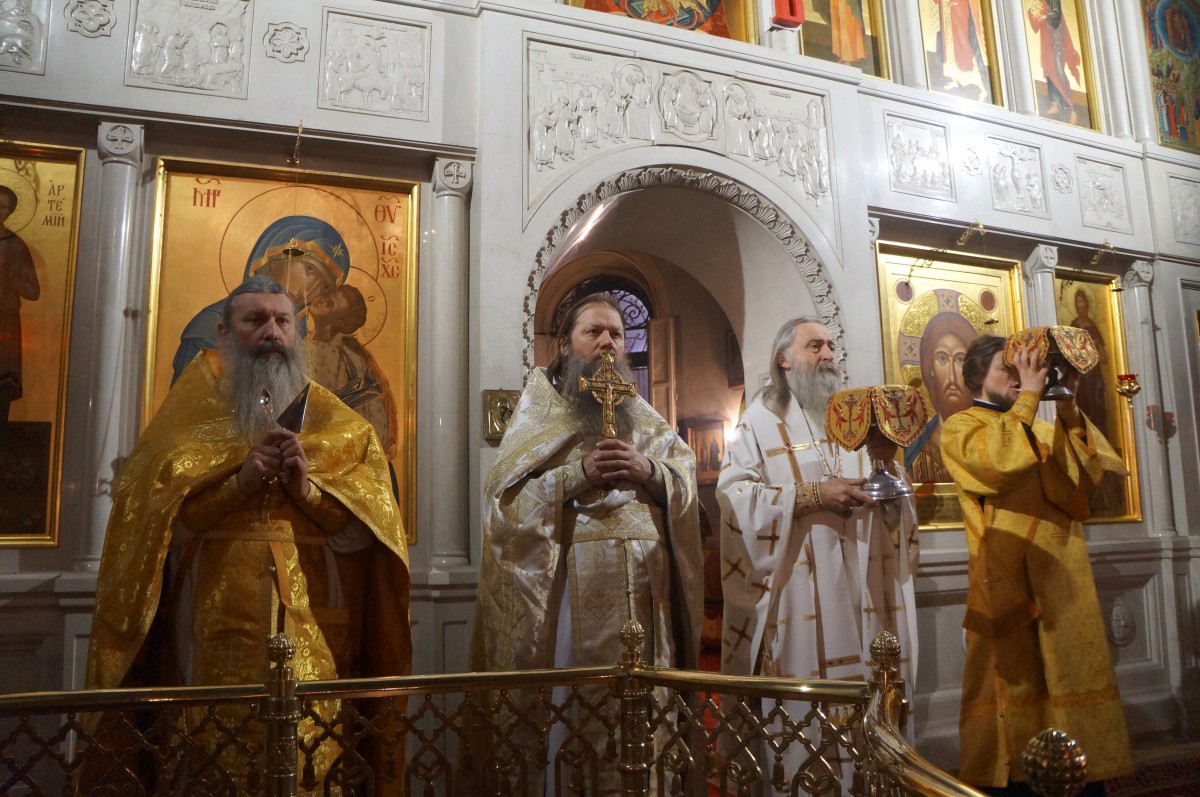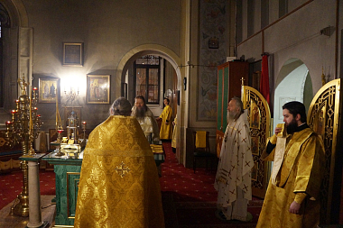 Его Высокопреосвященству сослужили старший священник и духовник Алексеевского монастыря протоиерей Артемий Владимиров и клирик обители протоиерей Сергий Теплов.