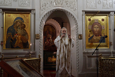 В своей проповеди по запричастном стихе духовник Алексеевского монастыря протоиерей Артемий Владимиров отметил, что человек, претерпевая искушения на пути самоотвержения, «добродушно терпя смущение сердца, не озлобляясь на людей, бодрствуя против лукавого, получит венец жизни со Христом – Его Благодать», дух радости и благодарения.