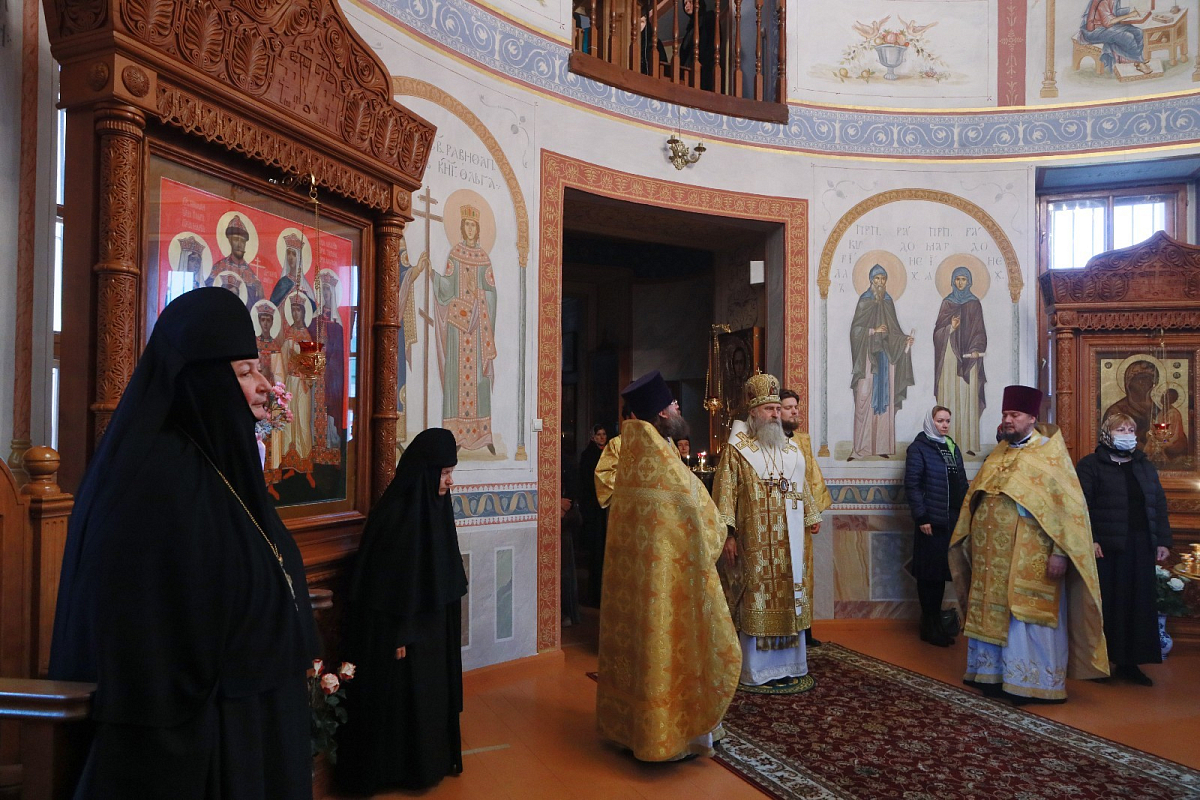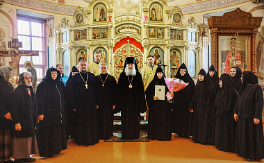 По окончании Литургии архиепископ Феогност передал благословение и поздравление Святейшего Патриарха Московского и всея Руси Кирилла настоятельнице Борисоглебского Аносина ставропигиального женского монастыря игумении Марии (Солодовниковой) с 15-летием настоятельства вверенной ей обители.