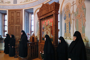 Песнопения исполнил монастырский хор под управлением инокини Нонны (Пушкиной).