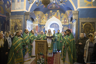 Его Высокопреосвященству сослужили заместитель председателя Синодального отдела по монастырям и монашеству, настоятель Московского подворья Троице-Сергиевой лавры архимандрит Стефан (Тараканов), наместник Николо-Угрешского ставропигиального мужского монастыря игумен Варфоломей (Петров), духовенство Угрешской обители.