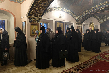 За богослужением молились: епископ Дмитровский Феофилакт, викарий Святейшего Патриарха Московского и всея Руси, наместник Андреевского ставропигиального мужского монастыря; заместитель председателя Синодального отдела по монастырям и монашеству, настоятельница Зачатьевского ставропигиального женского монастыря игумения Иулиания (Каледа); наместники и игумении ставропигиальных монастырей; помощник председателя Синодального отдела по монастырям и монашеству по вопросам сохранения и использования объектов культурного наследия С.А. Анохина; главный редактор сайта Синодального отдела по монастырям и монашеству Е.П. Орлова; заведующая канцелярией Синодального отдела по монастырям и монашеству Г.В. Филиппова.