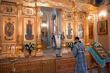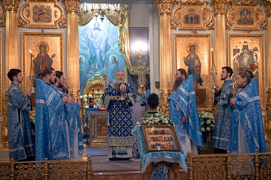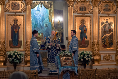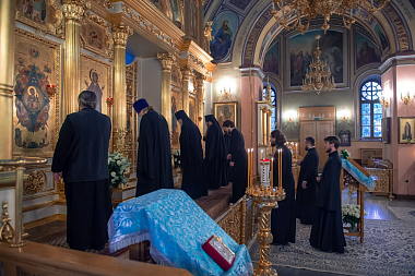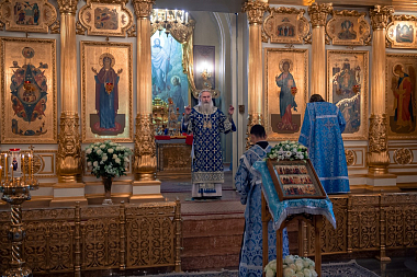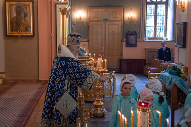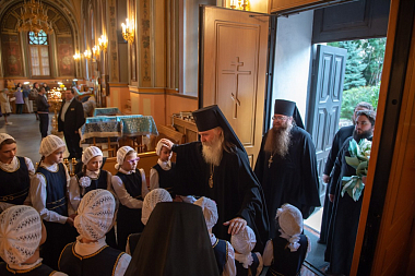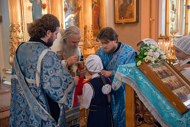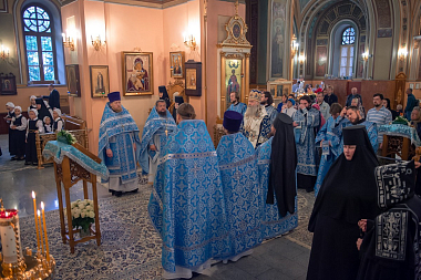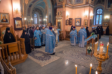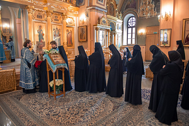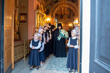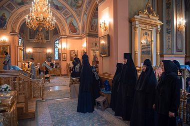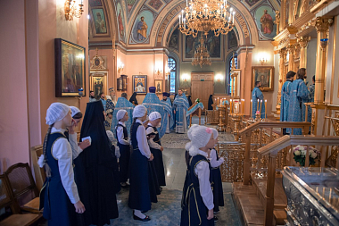 Настоятельница Покровского монастыря игумения Феофания, сестры обители, воспитанницы детского приюта при Покровском монастыре молились за Божественной литургией и причащались Святых Христовых Тайн. На богослужении также молитвенно присутствовали прихожане обители и паломники.