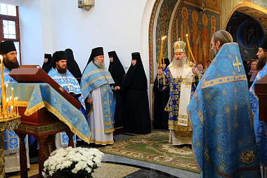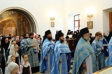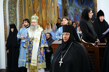 Богослужение совершалось в монастырском храме Живоначальной Троицы. Его Высокопреосвященству сослужили клирики Свято-Троицкой Сергиевой лавры и Стефано-Махрищского монастыря.