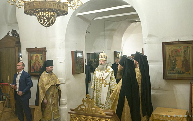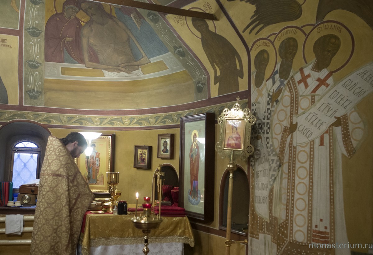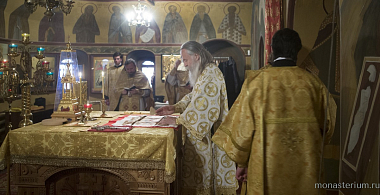 Его Высокопреосвященству солужили и.о. наместника Заиконоспасской обители иеромонах Даниил (Константинов) с насельниками монастыря в священном сане и братия обители Преподобного Сергия в священном сане.