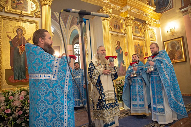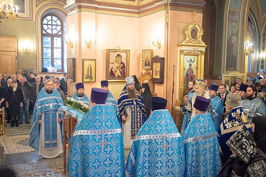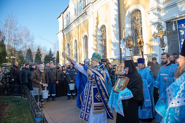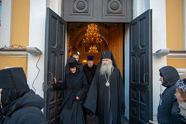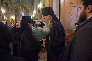 Его Высокопреосвященству сослужили: заместитель председателя Синодального отдела по монастырям и монашеству, настоятель Московского подворья Троице-Сергиевой лавры архимандрит Стефан (Тараканов); секретарь Святейшего Патриарха Московского и всея Руси по городу Москве, благочинный Центрального округа Москвы протопресвитер Владимир Диваков; благочинный Покровского благочиния Москвы протоиерей Александр Абрамов и клирики обители.