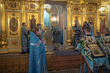 За Литургией молились настоятельница Покровского ставропигиального женского монастыря игумения Феофания (Мискина) с сестрами обители и подворий, воспитанницы монастырского приюта для девочек, благодетели и гости монастыря, а также многочисленные прихожане и паломники.