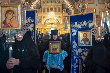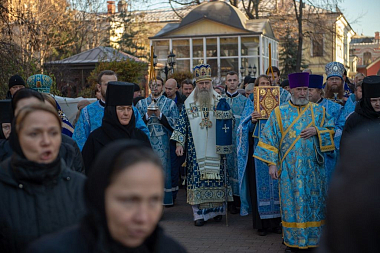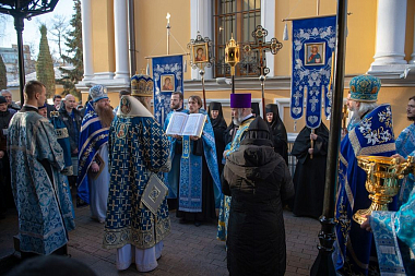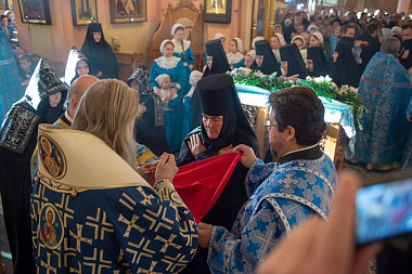 22 ноября 2019 года, в день рождения и тезоименитства святой праведной блаженной старицы Матроны Московской, викарий Святейшего Патриарха Московского и всея Руси, председатель Синодального отдела по монастырям и монашеству архиепископ Каширский Феогност возглавил Божественную литургию в храме Воскресения Словущего Покровского ставропигиального женского монастыря.