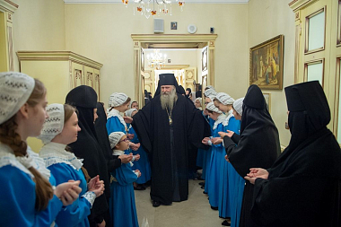 Торжество завершилось трапезой, во время которой воспитанницы монастырского приюта для девочек порадовали гостей праздничным концертом.