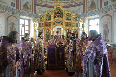 За праздничной Божественной литургией Его Высокопреосвященству сослужили: архимандрит Стефан (Тараканов), Заместитель Председателя Синодального отдела по монастырям и монашеству; клирики обители: иеромонах Адриан (Чаликов), протоиерей Владислав Сысолятин, иерей Георгий Кириндас.